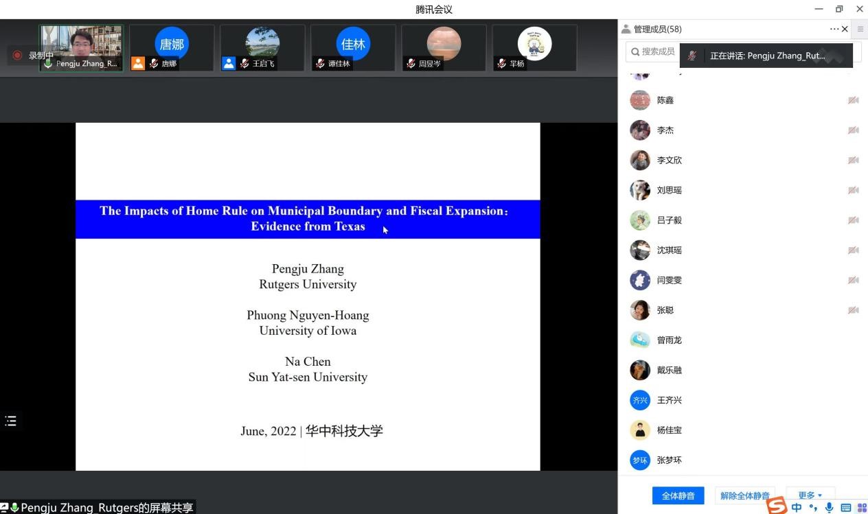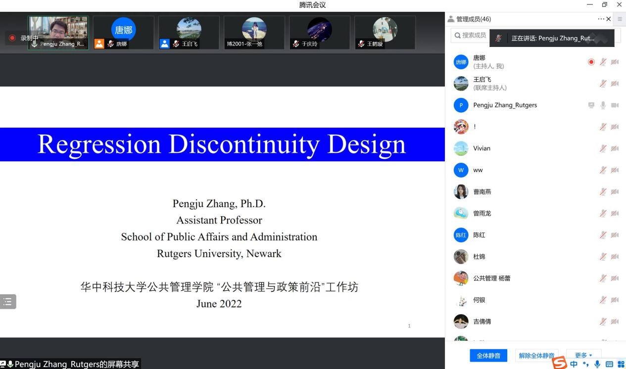 (通讯员 公管新闻中心 李书瑶)6月6日上午,公共管理学院第二届“公共管理与政策前沿”工作坊第七期通过线上腾讯会议的方式举行。美国罗格斯大学张鹏举副教授以“断点回归的基本原理与经典文献讲解”为题,为我院近100名师生作精彩讲座,王启飞博士担任主持人。
