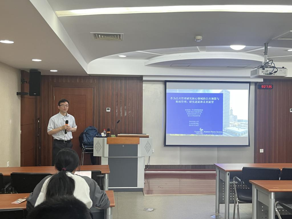 5月26日,陈灿博士分别面向青年教师与硕博研究生、国际学生,以“作为公共管理研究核心领域的公共预算与财政管理:研究进展和未来展望”为题展开专题讲座。他从公共预算、公共财政和财政管理三个维度,系统介绍了该领域的研究内容与热点研究问题。他强调,公共预算与财政本质上是政治权力分配的过程,这一特征具有重要影响。他还就该领域的核心学术期刊进行了介绍。