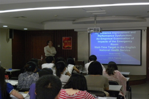 6月3日—8日, 应院长徐晓林教授邀请,美国科学院院士(公共管理类)、哈佛大学肯尼迪政府学院Steven Kelman教授莅临公共管理学院,为我院师生作了三场精彩报告。这三场报告分别是“管理实践和跨组织合作”、“绩效改进和绩效功能失调”和“SSCI论文写作和发表” 3场讲座。7日下午,学院还专门安排Steven Kelman教授对我院师生英语论文进行评论。