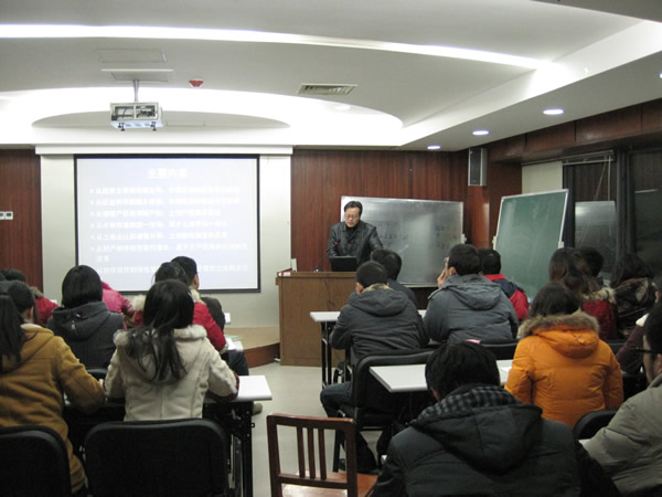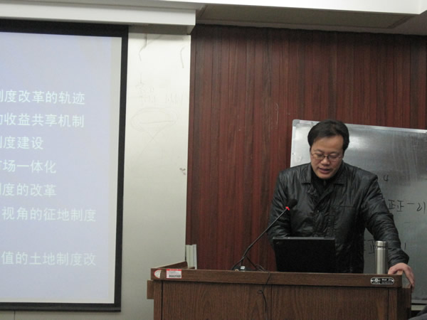 2010年12月16日19点至22点10分,在公管学院316教室,中国土地学会、中国生态经济学会理事、南京大学国土资源与旅游学系系主任、博士生导师黄贤金教授应邀主讲我院土地资源管理专业《土地经济学》硕士生国际化课程,为我院土地资源管理的全体老师和学生奉献了一场题为“土地经济学前沿(一)——中国土地制度建设与改革的若干思考”的精彩学术报告。此次课程由我院不动产研究中心主任卢新海教授主持。