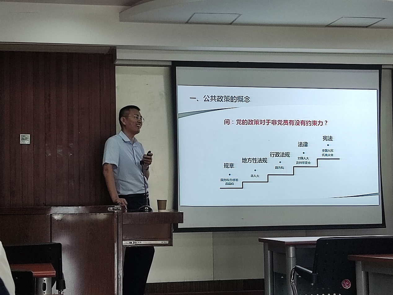 (通讯员 公管新闻中心 颜淼)2022年6月23日下午3点,公共管理学院课程思政和课程教学示范观摩活动在学院318教室举行。本次活动邀请教育部首批课程思政教学名师、《公共政策学》课程思政示范课负责人、中南财经政法大学学科建设办公室副主任、中南财经政法大学国家治理与公共政策研究中心主任、博士生导师庞明礼教授作为本次活动主讲教师。庞教授以“《公共政策学》课程思政教学设计示例”为主题,为学院20余名青年教师带来教学分享,分管本科教学工作的副院长谭术魁教授主持本次活动。
