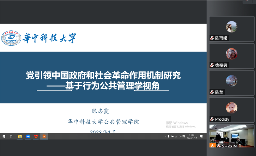 (通讯员 陈雨曦)1月12日下午,公共管理学院以线上线下结合的形式召开了党委理论学习中心组学习扩大会,邀请学院陈志霞教授阐释二十大精神。