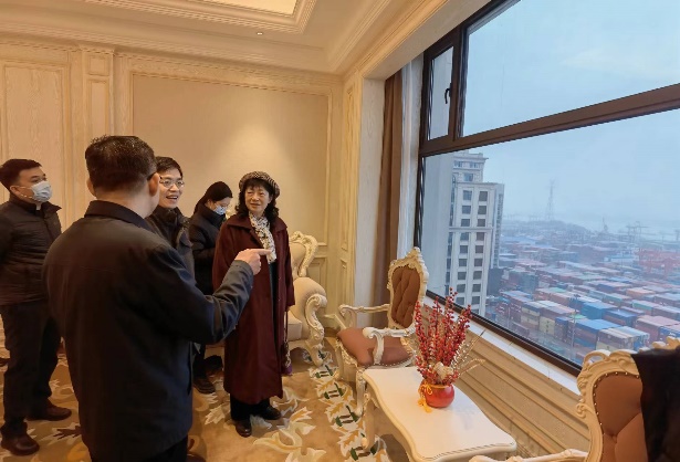谢建刚介绍了该公司的企业发展历程以及华中贸易服务区项目投资背景、整体规划及招商运营情况,并带领我院一行参观了华中贸易服务区内的武汉米乐斯国际大酒店、国际会展中心、国际贸易综合服务窗口等板块。他表示,阳逻作为国家级物流枢纽,拥有得天独厚的外向型经济高地优势,水运可直航日本、韩国、东南亚,铁运上可通过中欧班列直达欧洲,下可通过中老铁路直达老挝。华中贸易服务区建设初衷就是为了依托交通‘地利’之优势,通过项目建设的国际贸易综合服务窗口、国际会展中心、国家主题馆、商协会之家等具体项目设施加强国际贸易交往,促进物流“流量”转化为经济效益服务于地方经济发展。