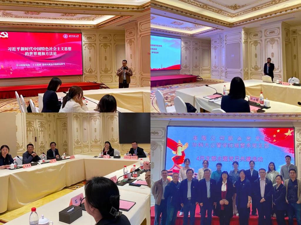 随后,全体党员同志在该公司会议室进行主题教育读书班活动。港服公司联合党支部副书记谢建刚为大家带来了一堂生动的微党课,他从中国共产党史和毛泽东思想出发,介绍了港服公司从党史中汲取经验智慧,并运用到公司内部治理与战略制定的过程。公管学院工会主席、党委成员王冰教授为大家作《习近平新时代中国特色社会主义思想的世界观和方法论》专题报告,王冰教授从历史变革、国际比较出发,指出科学的世界观和方法论是我们中国解决问题、实现发展的“总钥匙”,详细介绍了习近平新时代中国特色社会主义思想中的开放观、生态观、大局观、系统观、全球观和未来观,从科学、民主、法治、纪律、文化和制度几个方面讲解了方法论。两堂微党课,分别从企业内部治理、社会治理两种不同角度阐释了运用正确世界观和方法论的重要性,帮助与会党员加深了理论理解。
