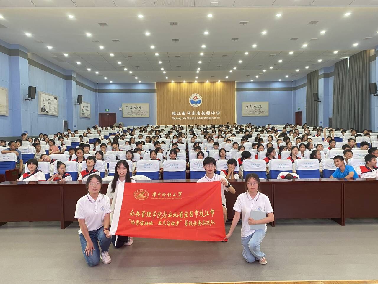 据悉,公共管理学院“抚苗滋兰”支教队是第一次在枝江市开展支教类社会实践,得到枝江市教育局的高度重视与支持。此次“大学课堂进中学”主题课程共覆盖马家店初级中学15个暑托班近700名初中生。同时,团队成员将以“稻香催新酿,鱼米留故乡”为主题,对枝江市生态环境进行调研,利用自身专业知识,发现乡村振兴中的治理之需,为美丽乡村建设贡献青春力量。