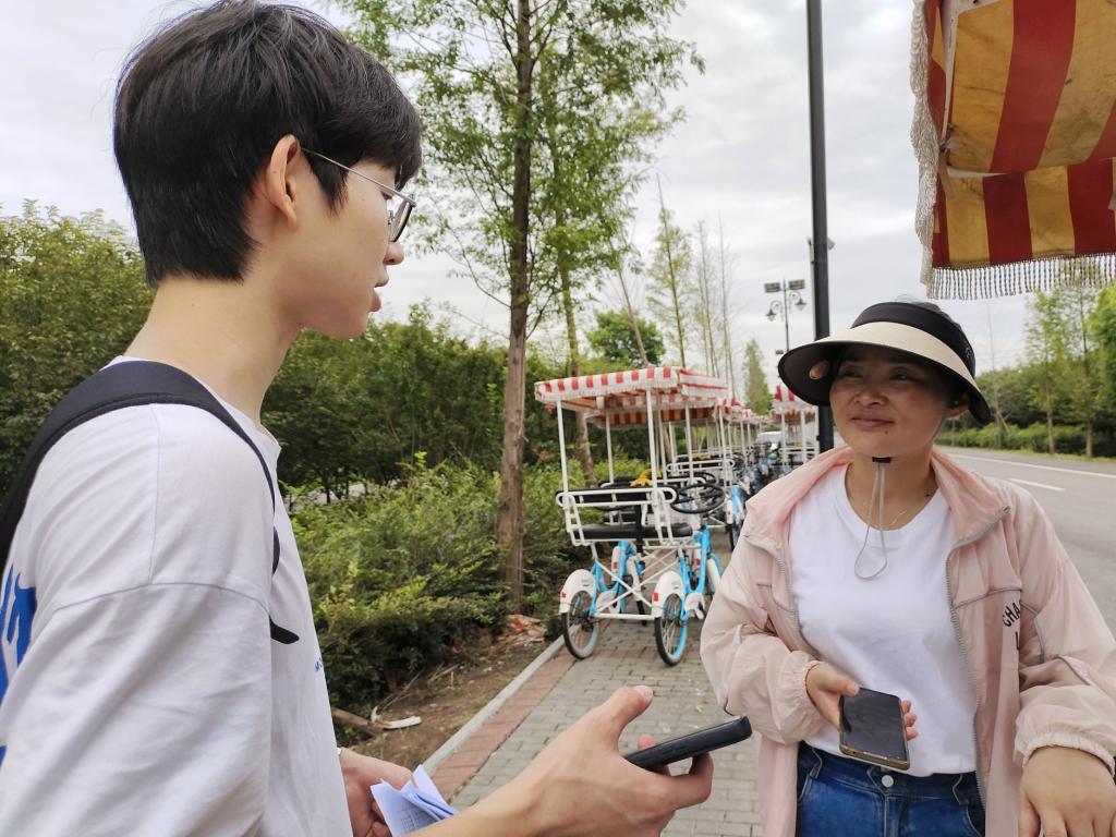 访谈中,队员们了解了构建污水管网系统、恢复自然河漫滩、栽植多层次植物隔离带、恢复健康水文过程等重要措施为主体的金湖生态建设模式。通过问卷调查,队员们还向市民和游客们了解了枝江市生态文明建设的具体情况。