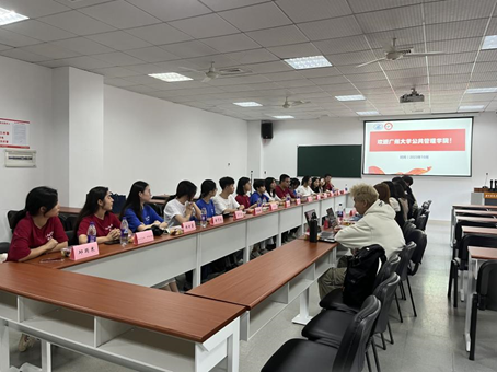 座谈会前,刘向晖一行旁听了柳婷副教授的《行政组织学》课程并参观紫菘活动中心一站式社区建设,深入了解我院课程建设与学生管理。