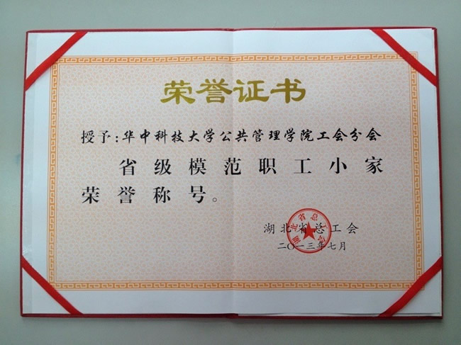 我院工会继2007年和2012年两度被评为校“优秀基层工会”、2009年被评为校“模范教职工之家”之后,更上新台阶,2013年7月被湖北省总工会授予“省级模范职工小家”荣誉称号。这是我院工会首次获得省级先进基层工会称号。