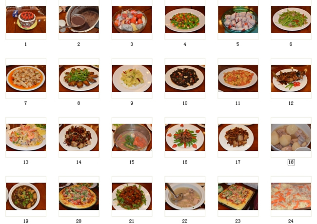 一盘盘菜陆续上桌。凉拌黑木耳、泡菜、卤鸡翅、糖醋鳜鱼、松鼠桂鱼、红烧肉、香肠炒青豆、麻婆豆腐、腊肉泥蒿、芹菜香干肉丝、肥肠辣椒炸、萝卜烧牛腩、辣子青鱼、红豆汤、闷炖山药筒骨汤、排骨藕汤、番茄炒鸡蛋、披萨、烤蛋糕、新疆抓饭、西班牙海鲜饭、水果沙拉……色、香、味、型具佳的各式菜肴很快呈现在评委的面前,前来观赛的同学和老师们也一饱口福,大家喝着,吃着,说着,笑着……其乐融融。