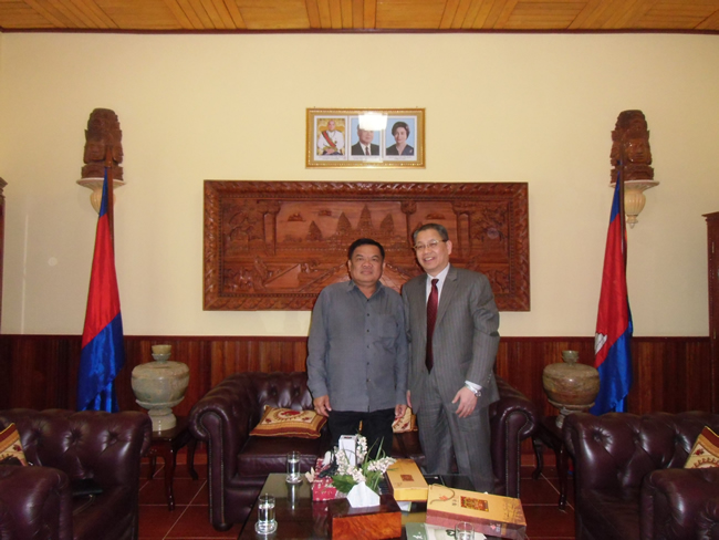 2012年3月,应柬埔寨王国副首相涅本才先生的邀请,我院徐晓林院长、黄栋博士对柬埔寨进行了访问,得到涅本才先生的亲切接见。徐院长向副首相先生报告了我校及我院的办学基本情况,表达了与柬方共同培养高层次人才的意愿。副首相对我院在柬埔寨开展教育合作表示了极大的兴趣与支持,并指示前国务大臣兼教育、青年、体育部大臣、现Pannasastra大学(PUC)校长高平先生直接与我方洽谈合作事宜。PUC(Pannasastra University of Cambodia)是柬埔寨最著名的私立大学,在访问期间,徐晓林院长参观了该校教学设施,与该校领导及部份教师进行了深入交流,双方一致同意近期启动公共管理硕士合作项目。