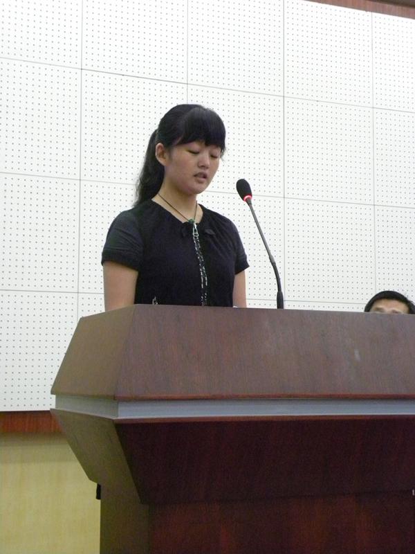 紧接着,2010级本科新生代表严华、硕士研究生新生代表张韦、博士研究生新生代表汪艳霞分别登台发言。其中,严华同学别出心裁的以播放VCR的形式让在座的各位老师和同学们倾听了本科新生的心里话,赢得了大家一致的掌声。