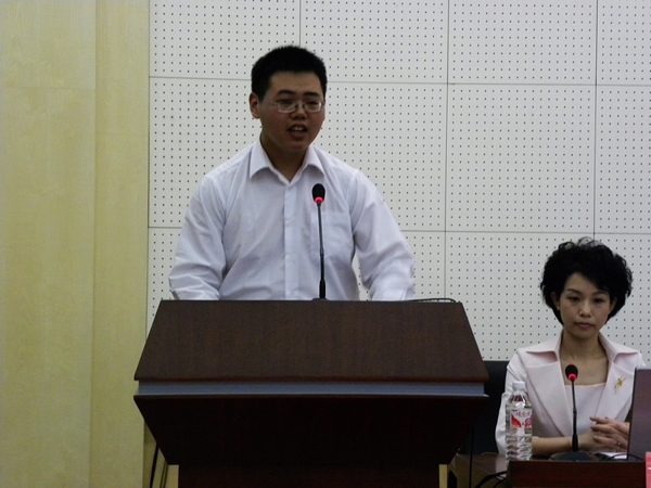 何流清书记代表学院致辞,他首先对2009级莘莘学子踏入我院求学表示热烈的欢迎。随后,他告诫在座新生不要虚图名牌学校的光环,而要怀着“不为成大学者,只想做大学问;不为成大富翁,只求干大事业;不为成大官员,只为建大功勋”的想法来读书,谨记“明德厚学,求是创新”的校训,秉承严谨勤奋的学风,求学深造,成就真才实学。同时,他承诺公共管理学院会竭力为大家提供治学育人的良好环境,希望老师们胸怀大爱,教学相长;管理人员本着管理就是服务的理念为师生服务;老师和同学们同心同德,热爱学院,建设学院,尊重自己,铸造辉煌。他衷心希望留学生能发挥中外友好交流的纽带作用,为促进世界和平与发展作出贡献。最后,他引用《老子》中的一句话——“合抱之木,生于毫末;九层之台,起于垒土;千里之行,始于足下”激励全体新生同学。