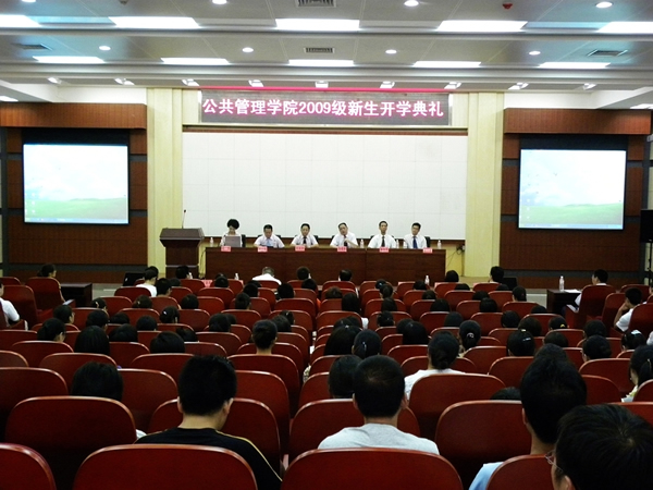 2009年9月4日下午3点,我院2009级新生开学典礼在院学术报告厅隆重举行。院长徐晓林教授、院学术委员会主席钟书华教授、党总支书记何流清同志、副院长谭术魁教授,党总支副书记童文胜副教授、部分研究生导师以及2009级本科生、硕士研究生、博士研究生、留学生参加了开学典礼。开学典礼由副院长陈鹤副教授主持。