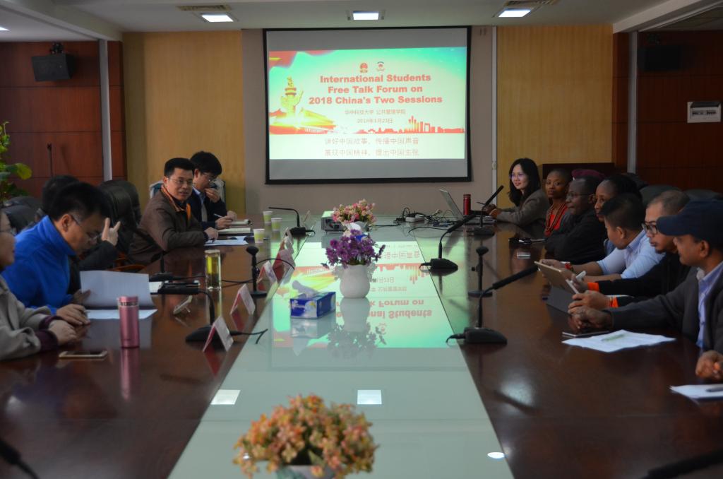 3月23日,公共管理学院召开国际学生畅谈两会专题会议。学院党委书记马冬卉,国际教育学院来华留学办公室主任兰行行、黄超老师,公管学院党委委员、工会主席王冰,行政管理系教授王国华,城市管理系副教授黄栋、副教授严丹屏等参与会议,公管学院国际学生辅导员张媛主持会议。