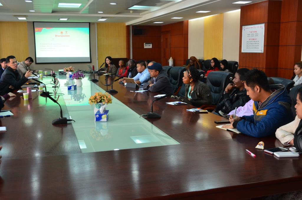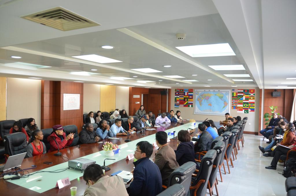 来自坦桑尼亚、波兰、也门、阿富汗、柬埔寨等20个国家的30余名国际学生就两会中重点议题如脱贫工作、“一带一路”等开展了热烈讨论。