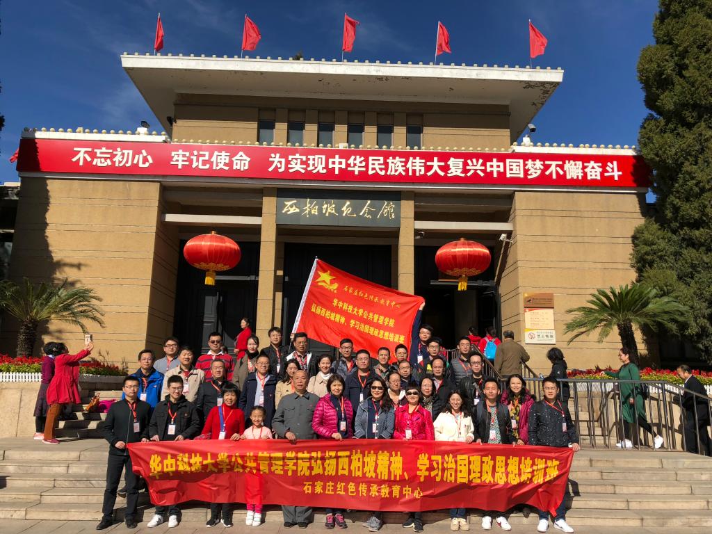 为了深入学习贯彻党的十九大精神,在实践中领悟习近平总书记的治国理政思想,弘扬爱国主义精神,公共管理学院师生党员、积极分子及无党派人士于10月26日-10月28日前往石家庄西柏坡、正定和保定等地开展红色实践教育活动。
