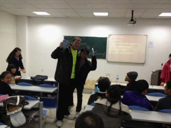 随后进行了有趣的“谁来比划谁来猜”机智游戏。同学们热情参与,在游戏中更加理解到不同文化背景、国家之间理解共识和差异。最后,由曾润喜老师对游戏中产生的前三组中外同学颁发了奖品。