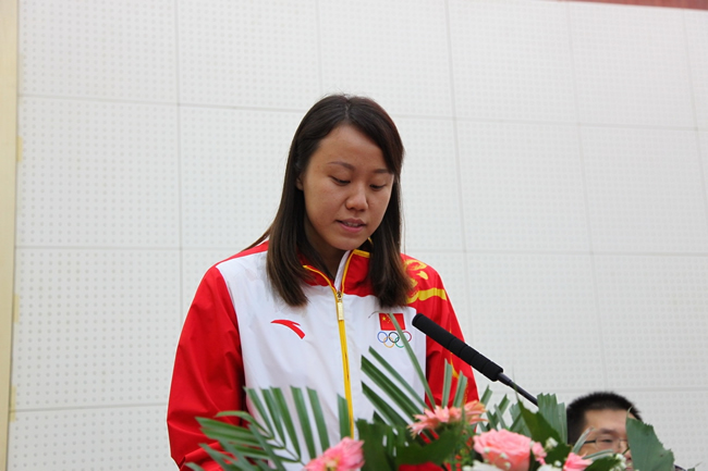 面对大家的热情欢迎,运动员代表赵芸蕾在讲话中首先对学校、老师以及同学们表达了衷心的感谢,并表示能够在伟德国际1949始于英国学习是非常幸福的。面对自己所取得成绩,她认为这些荣誉并不是属于个人的,运动员的成功离不开背后许多人全力关心与支持。最后表示,今后仍旧会刻苦训练,用优秀的运动成绩回报母校的老师同学们、回报社会。