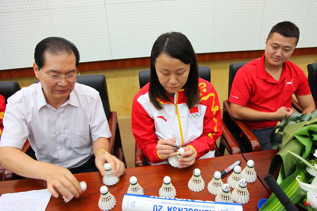 现场还进行了羽毛球签名活动。“签名球”活动点燃了现场的欢乐气氛,大家都争着欢呼着去接三位奥运健儿们抛出的签名羽毛球。据悉,其中三个“签名球”将分别陈列在校史馆、体育部和公共管理学院。