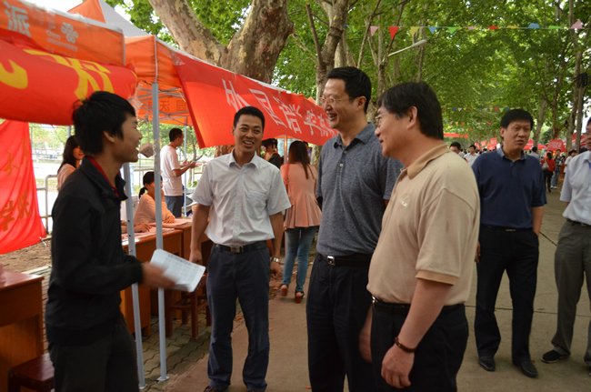 9月2日中午11点左右,校党委书记路钢教授在副校长邵新宇教授,研究生工作部、后勤集团等部门负责人陪同下;9月6日下午5点左右,在校党委副书记、副校长张晋教授,学生工作处、后勤集团等部门负责人陪同下,先后两次来到我院设在主校区与韵苑的迎新工作点,向党总支副书记童文胜老师及参与迎新工作的学生详细询问了我院研究生和本科生的迎新进度,了解了我院的招生状况,并高度评价了我院的迎新工作。