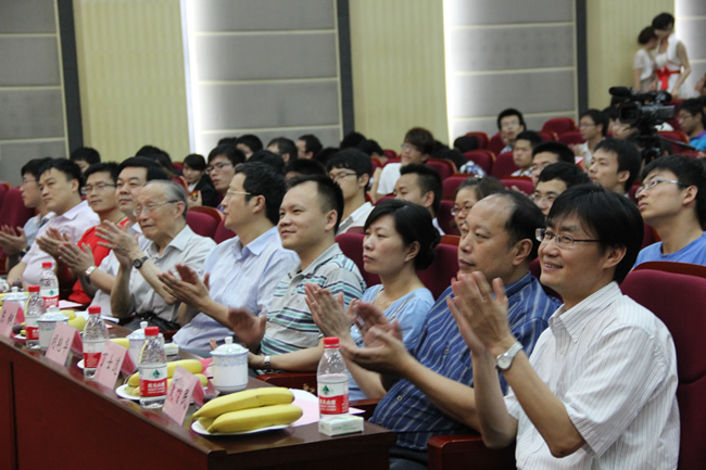 最后,综合四个环节的表现,来自人文学院与控制系联合组队的华中甲子队勇夺一等奖,来自船海学院的风海悦动队队与来自经济学院的亚特兰蒂斯队分别获二、三等奖,其他三支队伍获得优胜奖。杨叔子院士和张晋副校长亲自为获得一等奖的队伍颁奖,并合影留念。