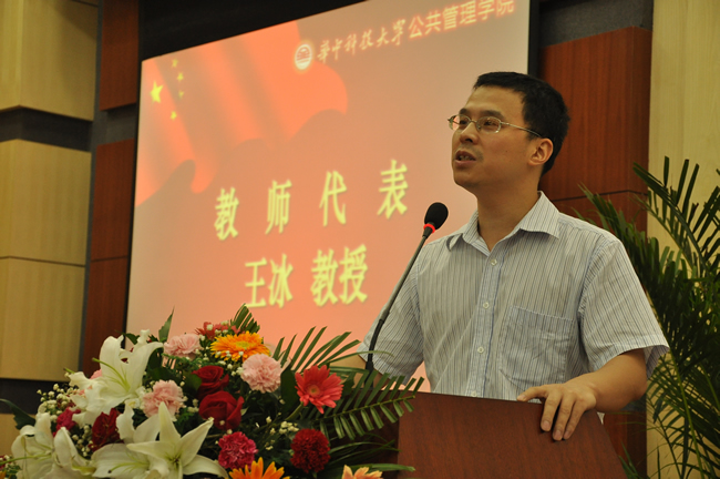 教师代表王冰教授希望同学们牢记为读研而奋斗的汗水、精神和方法,继续向前。他说,学院的老师也会将自己当做同学们学术上、人生上的同路人,与大家一起进步。