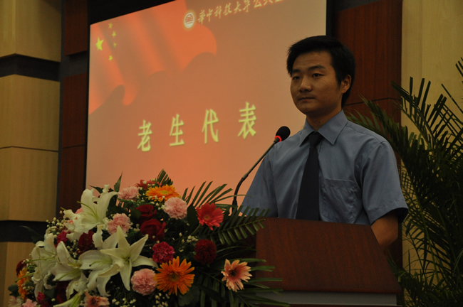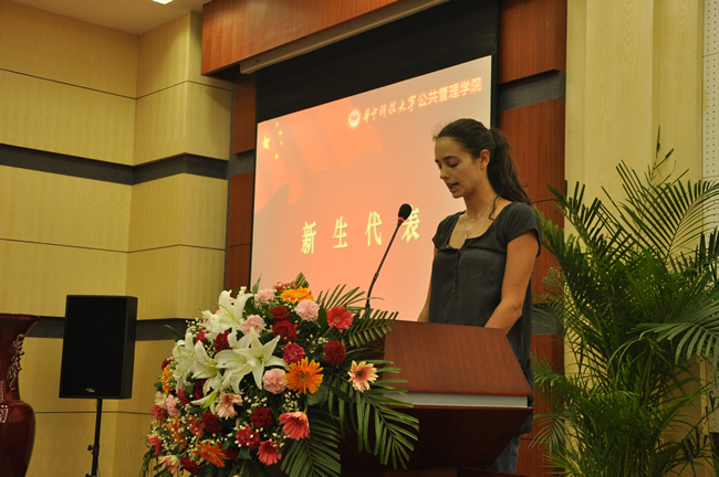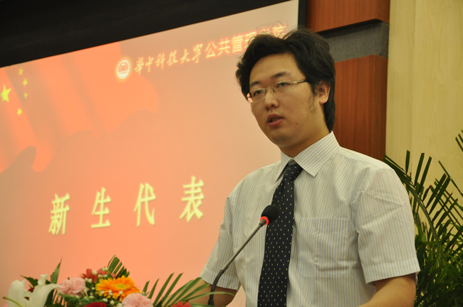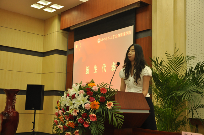 老生代表、2010级硕士研究生邓海峰,2011级MPA硕士研究生代表杨沛林,2011级留学生代表、西班牙留学生马丽娜,2011级学术型硕士研究生代表刘欣茹,2011级博士研究生代表马静分别发言。邓海峰说,自己在学院学习了5年,目睹了学院的发展,心怀自豪和感激,并代表老生向新生表示欢迎。杨沛林表示,作为在职公务员,不应该把MPA仅仅看成一份证书,而应该是人生的加油站,要在工作中实践公共管理理论,改造社会。马丽娜、刘欣茹、马静对即将到来的学习生活充满希望。