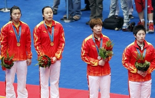 赵芸蕾(左二)、王晓理(右二)在领奖台上