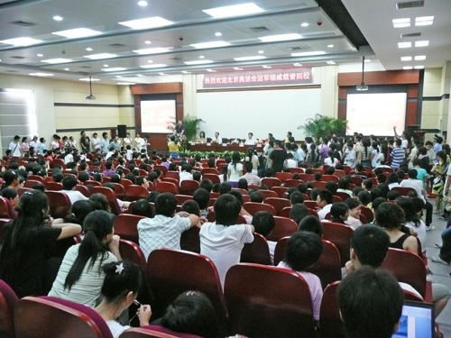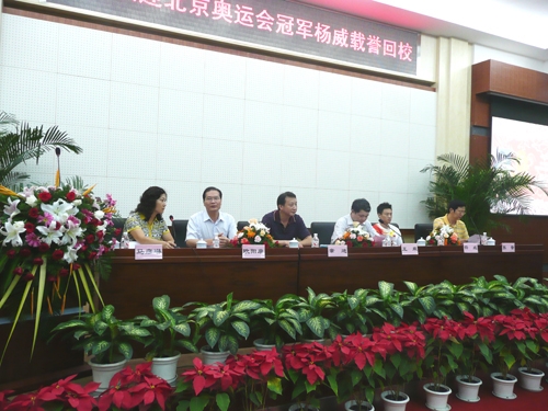 湖北省体育局副局长章进在会上介绍说,在北京第29届奥运会上,湖北共有12名运动员出战,其中4名运动员在华中大就读,即游泳运动员洪文文、体操运动员杨威、羽毛球运动员高崚和网球运动员李娜。曾在高校工作的章进表示,自己从20年前起就一直有一个梦想,就是中国有朝一日像西方发达国家一样,拥有大学生奥运冠军,高水平运动员能够进入大学学习。他的梦想终于得到了实现。他向我校表示祝贺和感谢。