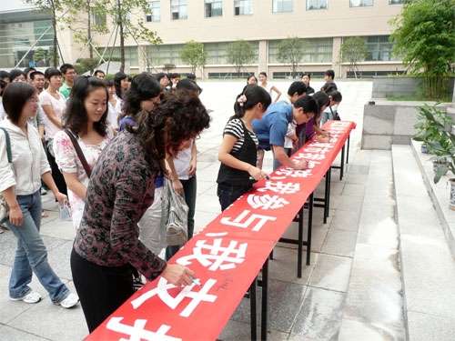 童文胜副书记在讲话中强调,湖北省对武汉申报文明城市非常重视,省政府给予了大力支持,政府正在想方设法改善武汉市的文明现状。现在进行的“两型社会”——资源节约型、环境友好型社会建设,正是文明城市建设的一个方面。作为武汉市知名高校的学生,既是文明城市创建的积极参与者,也是文明城市创建的直接受惠者。武汉文明形象的提升,必然带来学校形象、学院形象、学生形象的提升。因之,同学们能够、也应该为武汉市文明城市建设做出自己的贡献。作为“领导者的摇篮、政府的思想库”的公共管理学院的学生,未来无论是从事研究还是从事其它的工作,都应该具备高素质。个人素质的提高是一个常抓不懈、不断升华的过程。童书记最后强调,积极参与文明武汉的建设不能仅限于形式,虽然需要通过这样的签字活动来做出承诺,但是更重要的是要靠大家的实际行动去实现承诺、履行承诺。