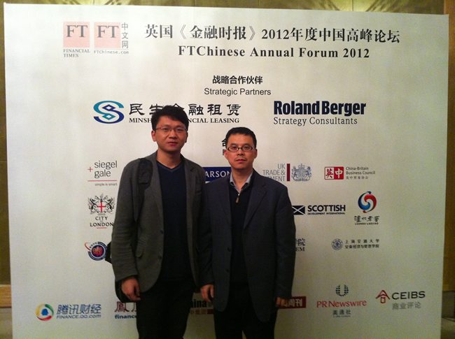 11月2日,由英国《金融时报》、FT中文网主办的英国《金融时报》2012年度中国高峰论坛在北京召开。本次论坛的主题为“时局与前瞻:变革中的抉择”,有近30位著名经济学家、企业家、金融界人士到会发言,并就多个经济热点问题展开了深入交流。我院教授王冰和博士生张宇受邀参加了此次论坛。