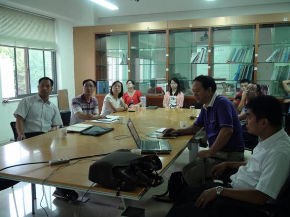 以借鉴决策剧场建设经验为主要目的,周院长一行首先参观了我院维视德电子决策剧场,并详细询问了电子决策剧场的建设情况、运行情况、后期的发展和建设规划情况。其后,周院长一行参观了公共安全预警研究中心,了解了预警研究中心的研究方向、研究成果以及当前的主要研究重心,并表达了将来在气象灾害应急方面开展合作的意向。