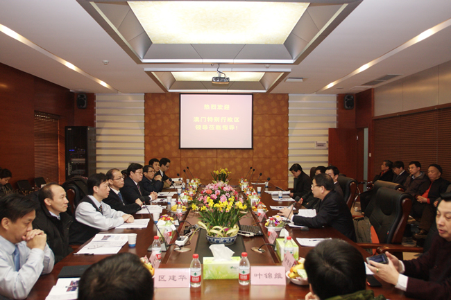 元月31日,应我校邀请,澳门特别行政区行政暨公职局局长朱伟干先生率领澳门政府代表团一行十一人专程来到伟德国际1949始于英国,对我院的电子决策剧场进行了工作访问。湖北省副省长田承忠同志、湖北省政府副秘书长骆新华同志、校党委书记路钢教授和校长李培根院士分别会见并宴请了澳门政府代表团朱伟干局长一行。