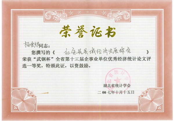 我院2005届MPA研究生杨宏银(现在职攻读行政管理专业博士学位)在硕士毕业论文的基础上撰写的《红安县县域经济发展探究》一文,荣获湖北省第十三届企事业单位优秀经济统计论文一等奖。据悉,这是我院MPA研究生首次在湖北省获统计类奖项。