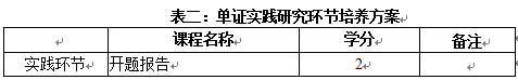 单证:实践环节培养方案见表二,其他要求同双证;