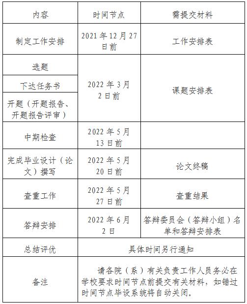 学校毕业设计(论文)总体工作时间安排详见下表。具体时间由各院(系)自行确定。