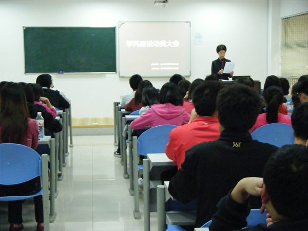 陈鹤首先宣读了公共管理学院2010年一号文件即《关于调整公共管理学院“学风、教风”领导小组人员名单的通知》。童文胜简要解读了我院学风教风建设实施方案。他说,学风是形成良好校风、院风的基础和前提,是培养高素质人才的关键。我院将积极响应校学风教风建设实施方案的总体部署和要求,以“培养公共管理专业精神”为指导思想,深入开展我院学风教风建设,全面提高教师教学业务水平和职业道德水准,全力提升学生综合素质和就业竞争力。他介绍说,学院“教学口”将继续推行并完善院系负责人听课制度,落实本科学业导师制度与读书活动,构建本科教学质量评估体系,强化实践教学环节并启动文科综合实验教学中心建设工作,加强教学研究与改革及对教师的培养与支持;“学生口”则将以“公共管理专业精神”为主题,以班级为单位,以学生会为主导,以风晓信息网为阵地全面展开学风建设活动。