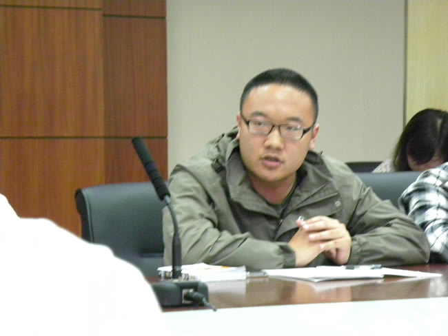 08级的徐玉婷同学作为一名“公管老生”,结合自己的体会就数学课、全英语教学、案例教学、经济学类课程等表达了自己的看法。09级学生代表池明霞同学认为教学规模会影响师生交流,大班教学不利于提高大家的学习热情,希望数学课能够小班教学。她还谈到一些同学与学业导师沟通不主动、交流很少的问题。10级学生代表刘帅同学就跨院系的课程选修、教学模式的创新等问题表达了自己的看法和建议。11级学生代表卢丁菲同学提出了大班教学效果差、学院的信息发布途径少等问题。