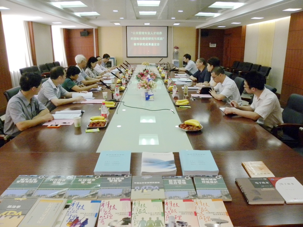 6月30日上午,由东北大学博士生导师娄成武教授担任主任委员,中南财经政法大学公共管理学院院长、博士生导师赵曼教授,华中师范大学管理学院院长、博士生导师张立荣教授,中南民族大学公共管理学院院长、博士生导师吴开松教授,华中农业大学土地管理学院系主任、博士生导师杨钢桥教授担任委员的专家鉴定委员会对我院“公共管理专业人才培养的国际化路径研究与实践”教学研究成果进行了鉴定。课题组主要研究人员我院院长徐晓林教授、副院长陈鹤副教授、城市管理系主任张毅教授、城市管理系王冰教授等参加了鉴定会。