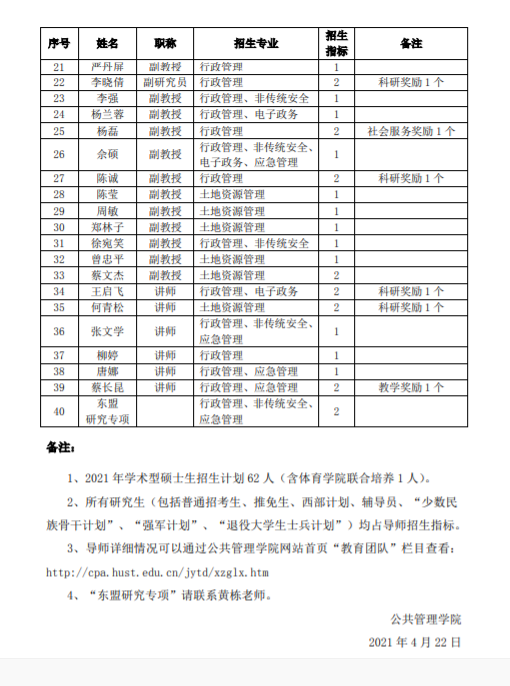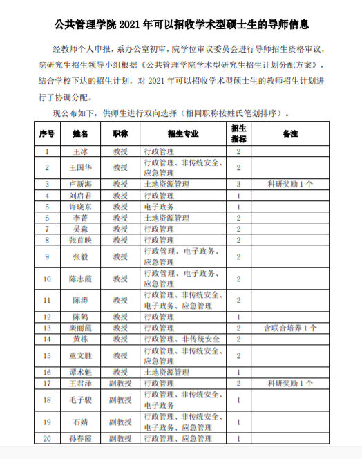 公共管理学院2021年可以招收学术型硕士生的导师信息