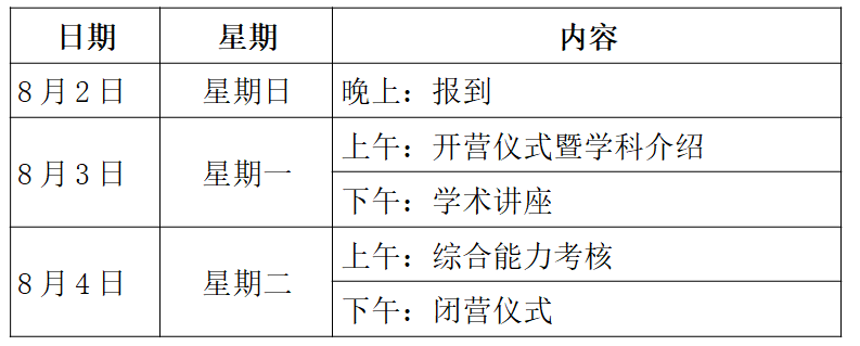 夏令营时间初步拟定为8月2日至4日,具体安排及网络平台另行通知。
