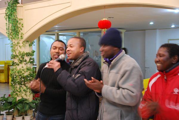 饭后的表演则是聚会的另一个高潮。学院老师的率先演唱很快调动了大家的积极性,留学生们轮流唱着带有各自家乡风情的歌曲,尽兴之余更有留学生上前跳起舞来。