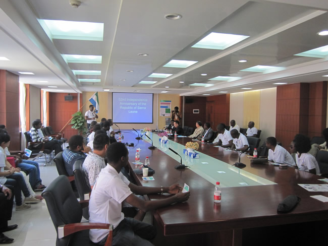 会议由在我院就读行政管理专业硕士学位的Michael主持,他指出了赢得独立对于塞拉利昂及其人民的重要意义,倡议大家对此进行反思,感谢大家从各地汇聚到一起参加此次纪念活动,希望大家能够好好享受美好的纪念日。全体塞拉利昂留学生们热情、激动地演唱了塞拉利昂共和国国歌。