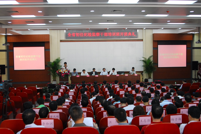 开班典礼由省监察厅副厅长黎虹同志主持。来自全省市、县两级纪委监察局近年来初任的纪检监察干部,省纪委监察厅宣教室主任何畏同志、副主任朱庆刚同志以及我校学校办主任梁茜同志,纪委副书记、校监察处处长管和纯同志,我院全体院领导参加了开班典礼仪式。