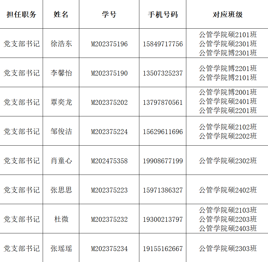 三、研究生奖学金申请过程中,需填报班长/党支部书记作为审核人,请同学们统一填报党支部书记,人员信息如下,如填报错误需进行退回: