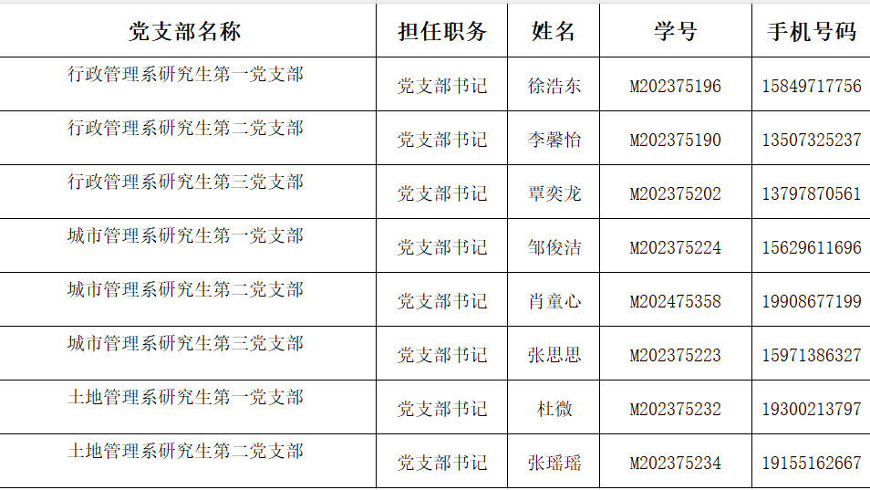1.研究生奖学金申请过程中,需填报班长/党支部书记作为审核人,请同学们根据所属师门统一填报党支部书记,人员信息如下,如填报错误需进行退回: