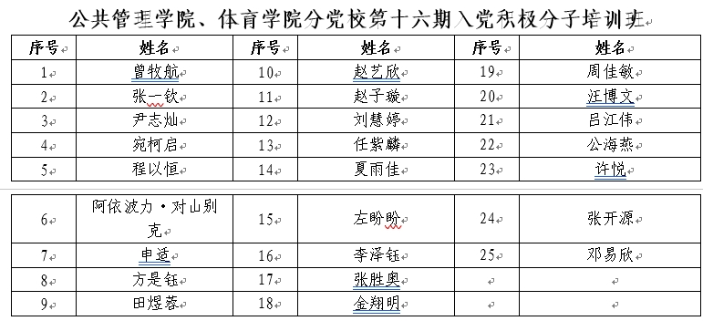本期入党积极分子培训班共有学员25人,人员名单如下: