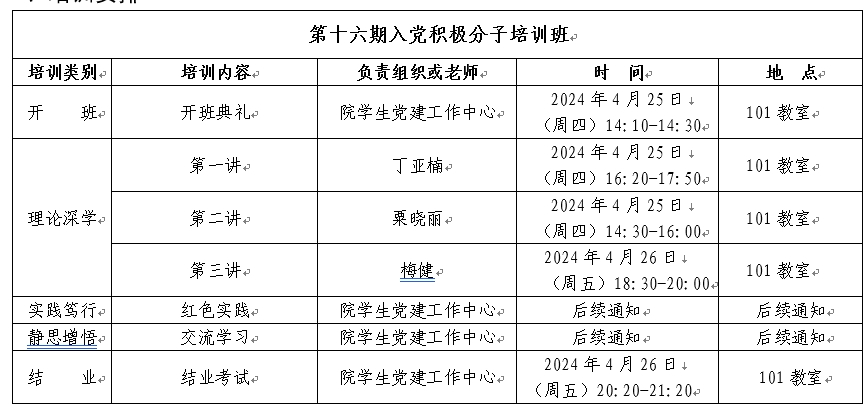为深入学习贯彻习近平新时代中国特色社会主义思想,全面贯彻落实党的二十大精神,教育引导学院入党积极分子学懂弄通党的性质、宗旨、纲领、任务、指导思想、组织原则和纪律要求,坚定树立为共产主义事业奋斗终身的信念,根据学校相关文件的规定和精神,公共管理学院、体育学院分党校拟举办第十六期入党积极分子培训班。现将相关安排通知如下:
