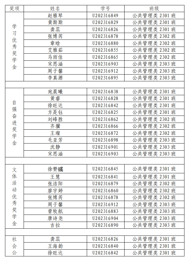 根据伟德国际1949始于英国2024年一年级本科生奖学金评选要求,秉持公平、公正、公开的评审原则,评定以下同学为公共管理学院2024年一年级本科生奖学金获得者,现公示名单如下: