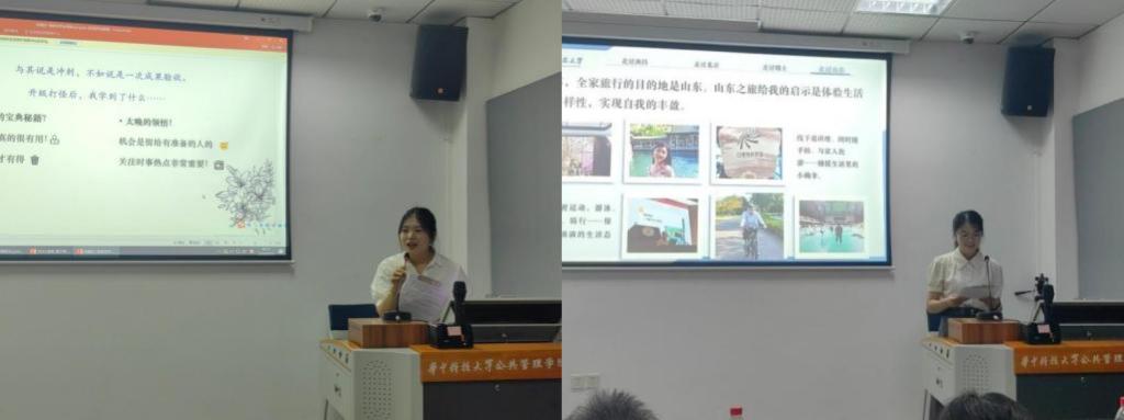 2023级本科生艾雅茹以“云程发轫,未来可期”为主题,讲述过去一年的成长故事,表达继续奋往直前的决心和勇气。2022级本科生刘亦菲讲述“跨越753天”,于沉潜往复中锻造学问、于服务奉献中提升自我、于实践探索中突破桎梏的成长。2021级本科生周子羽从“一个人的深耕”“一群伙伴的战斗”“一片森林的浪漫”三个方面,分享了他的深耕与收获。2023级本科生宋思涵展示了丰富多彩的学习生活,表达了“允许万物穿过,允许一切发生”的乐观态度。2022级本科生郭子妍既不断拓展视野的广度,又持续挖掘学习的深度,分享了自己潜心求索、厚积薄发的成长历程。2022级本科生阳乐分别从“求学”“求是”“求实”三个维度,展现了自己筑牢根基、不断向上的追求。2021级本科生张嘉欣讲述了她持续奋进的“热血大三”以及一往无前的保研之旅,她坚信“求知是一条只有起点而没有终点的路”。2021级本科生刘姝媛始终带着思考践行践悟,不怕失败努力向前,终于达成了自己的学业梦想。